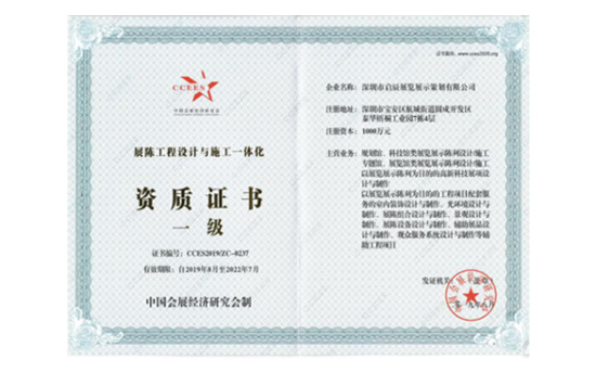 啟辰作為國內最早專(zhuān)注從事展覽館設計的公司,并榮獲“中國品牌設計機構”,公司具備“中國展覽館設計施工一級資質(zhì)企業(yè)”、“國家高新技術(shù)企業(yè)”、“中國多媒體工程系統集成資質(zhì)一級”等相關(guān)專(zhuān)業(yè)資質(zhì)及榮譽(yù)。